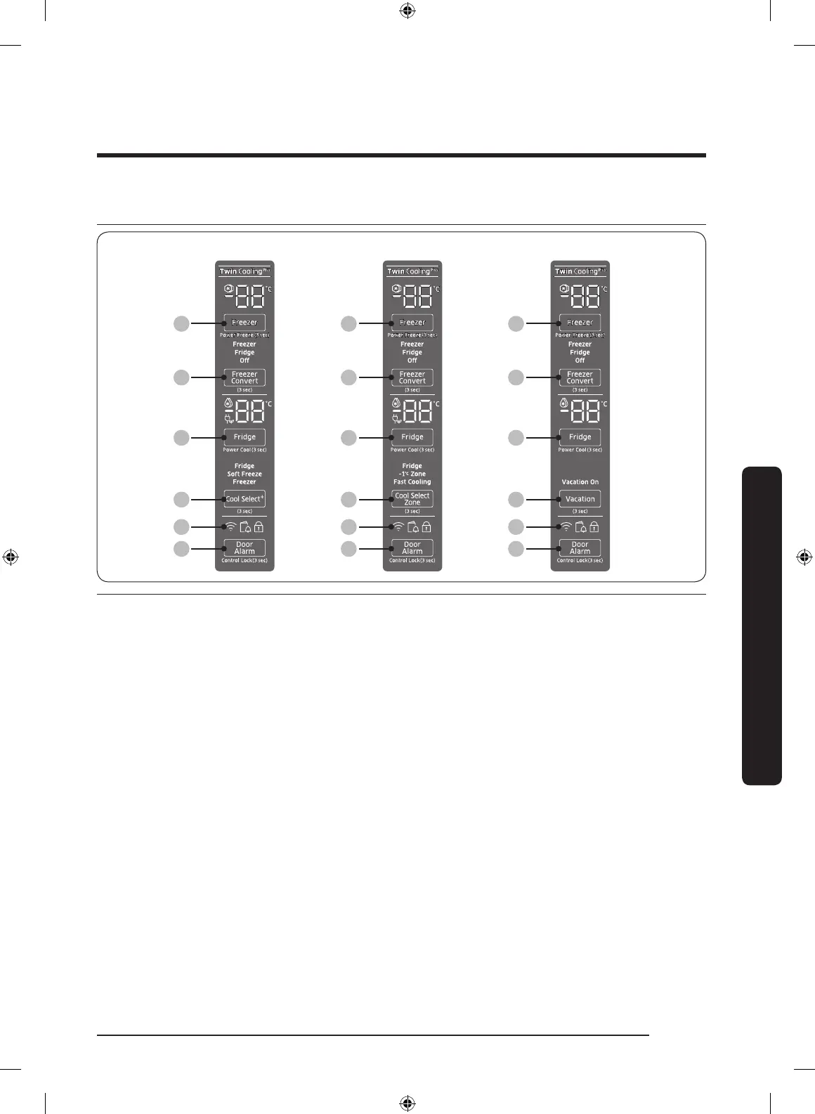 01 Freezer / Power Freeze 02 Freezer Convert 03 Fridge / Power Cool /