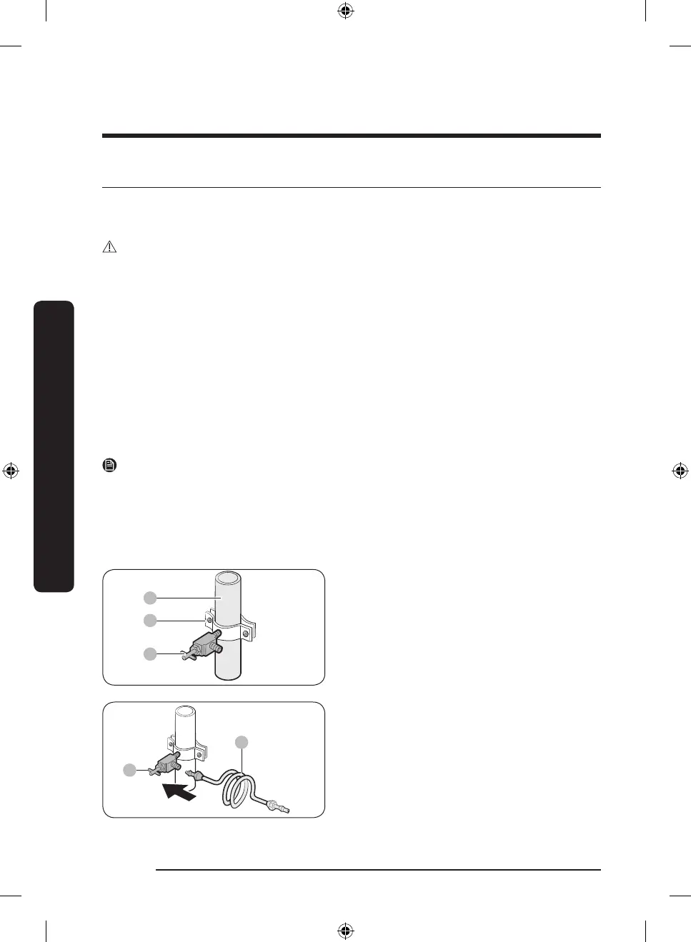 • Do not install the water line in areas where temperatures fall below the freezing point.