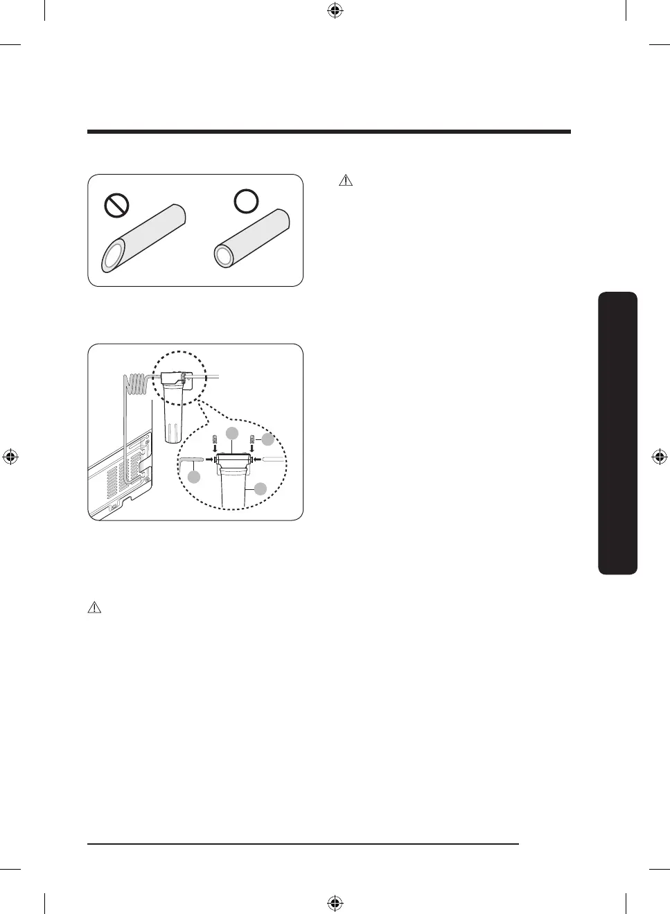 • When moving the refrigerator for line connection, use caution so that you don't step on