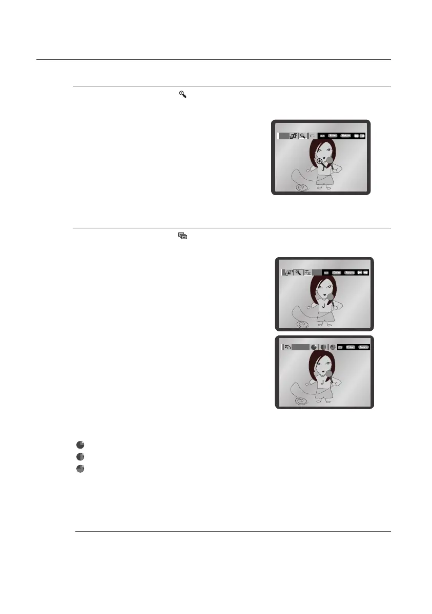 Press the √ or ® button to select . Each time the ENTER button is pressed, the picture is enlarged
