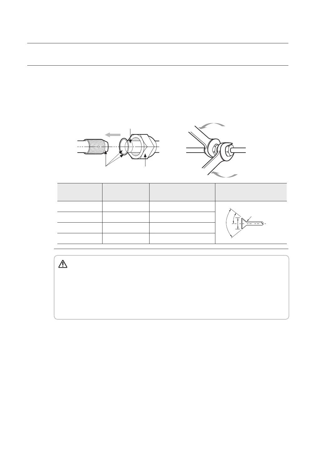 • Align the center of the piping and sufficiently tighten the flare nut with fingers. Finally, tighten