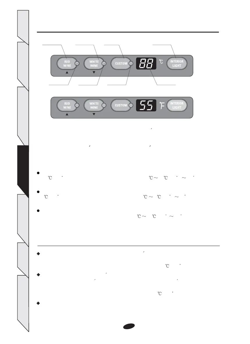 mode, the red wine indicator will light up, DISPLAY will show the temper