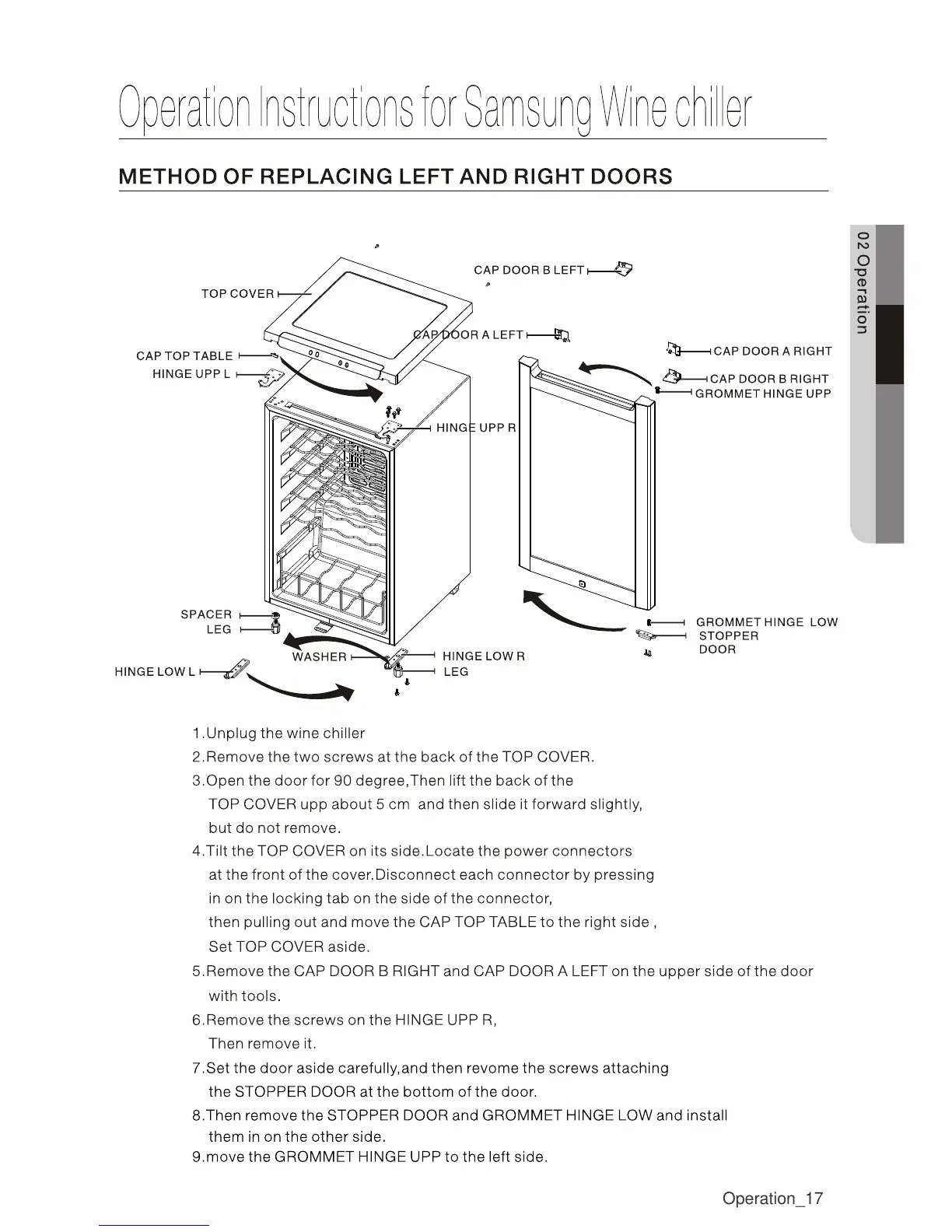Samsung RW33EBSS - Door Replacement Guide; Reversing the Wine Chiller Doors