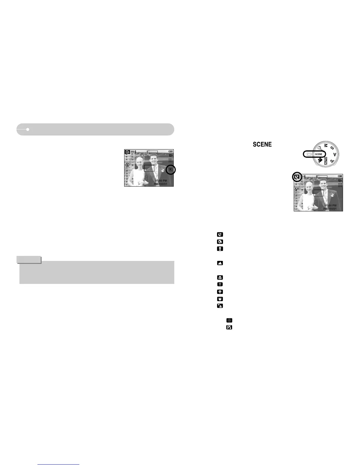 1.모드 다이얼을 돌려 장면 촬영 모드를 선택