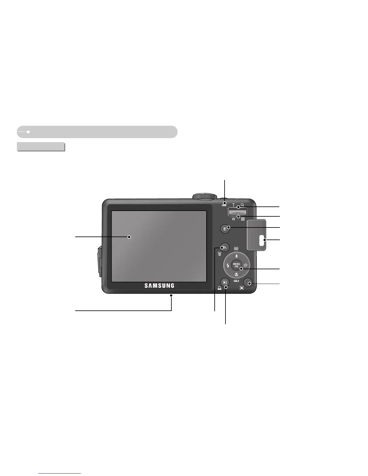 Samsung S1050 - Digital Camera - Compact - 뒷면 & 밑면; 전지를 바르게 넣어주시기 바랍니다. 밑면; 5 기능 버튼