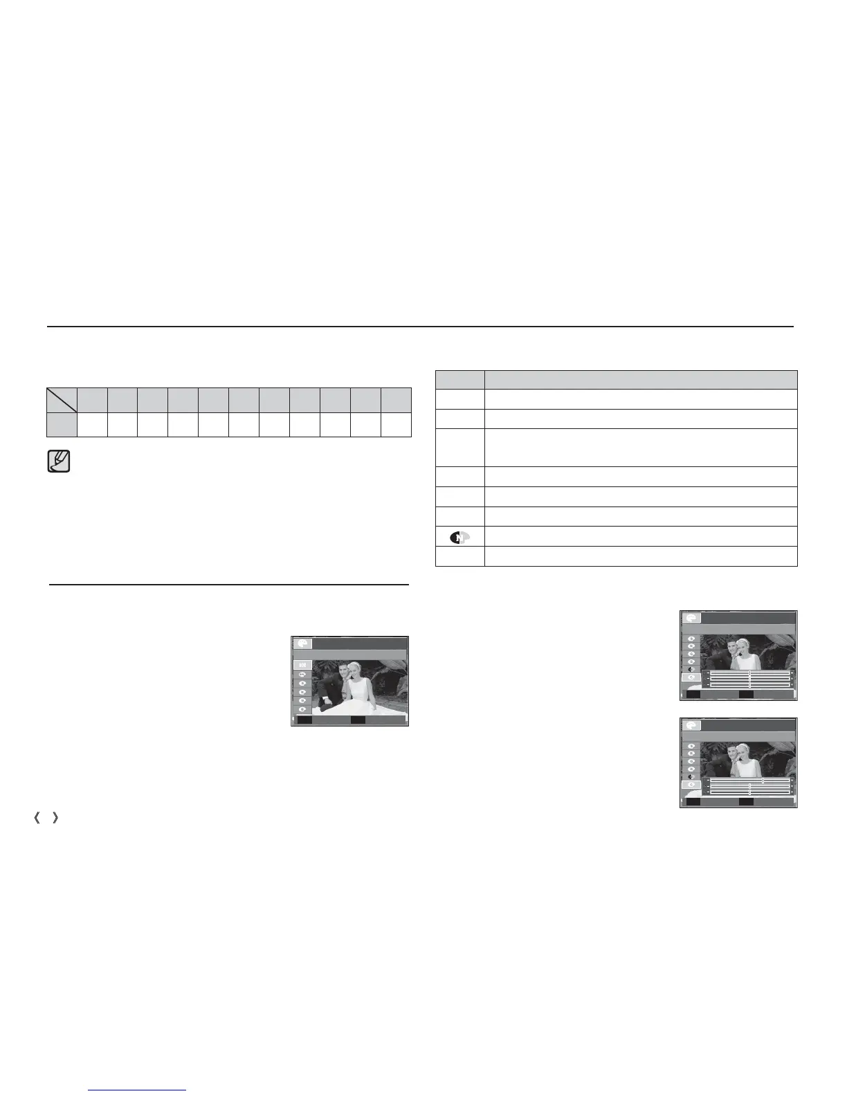 Available Effects, by recording mode ( o : Selectable)