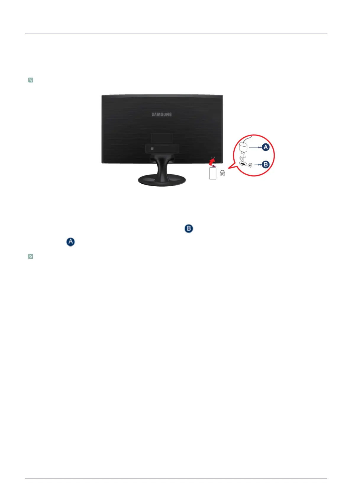 3. Insert the locking device into the Kensington slot on the Monitor( ).