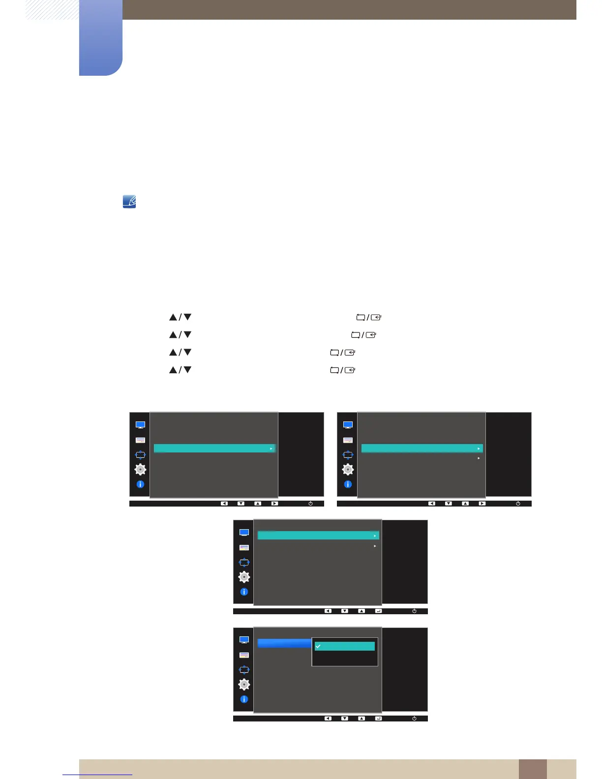 The functions available on the monitor may vary depending on the model. Refer to the actual product.