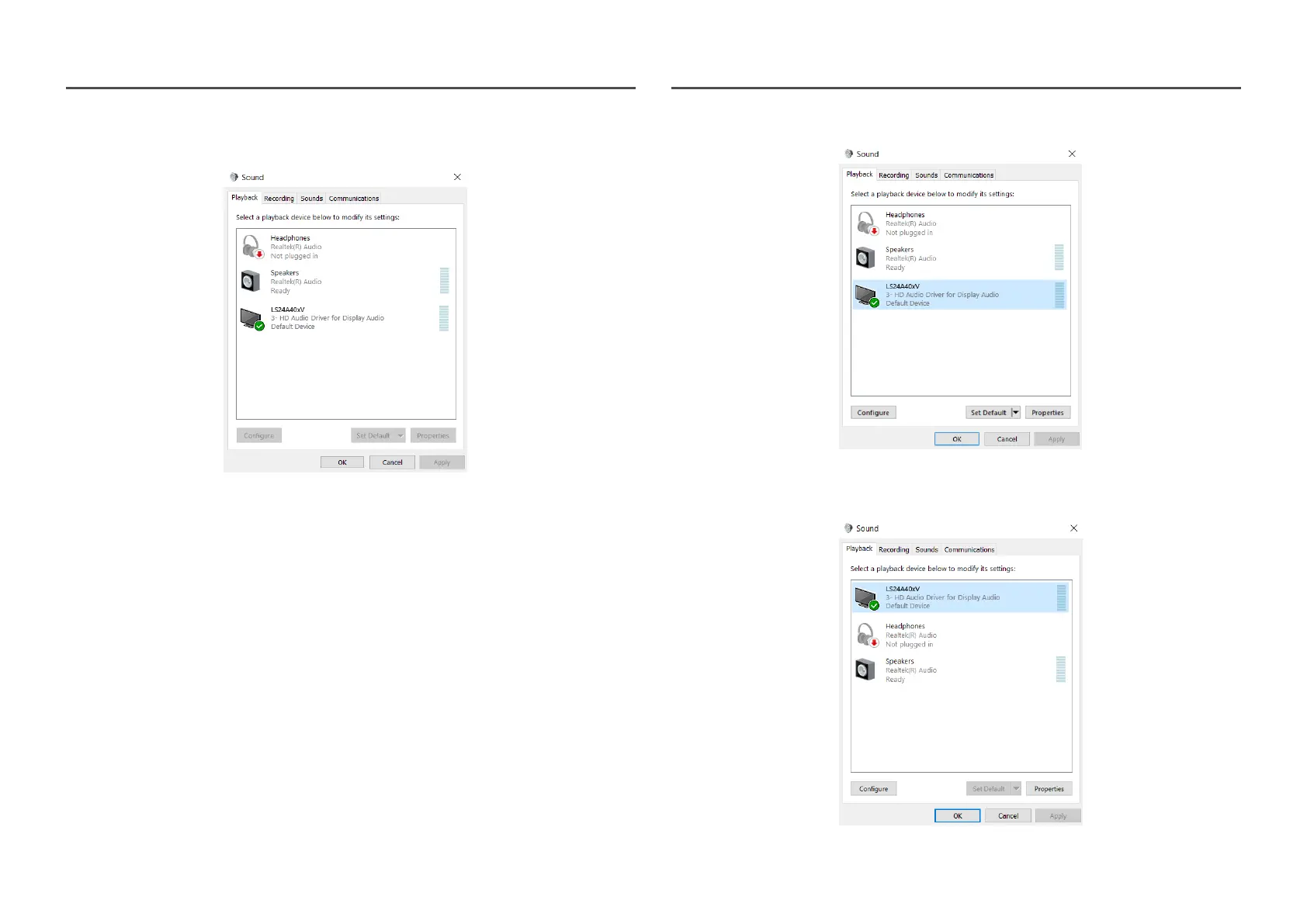 Click LS24A40xV and then click Set Default, the monitor speaker will be used as the default setting.