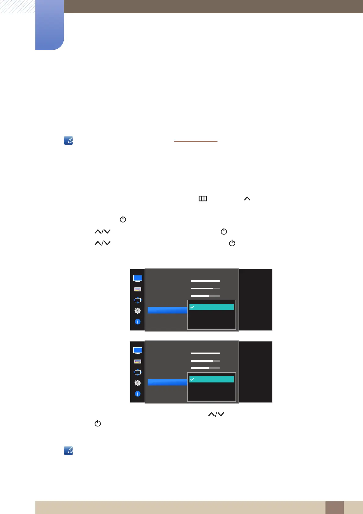 The functions available on the monitor may vary depending on the model. Refer to the actual