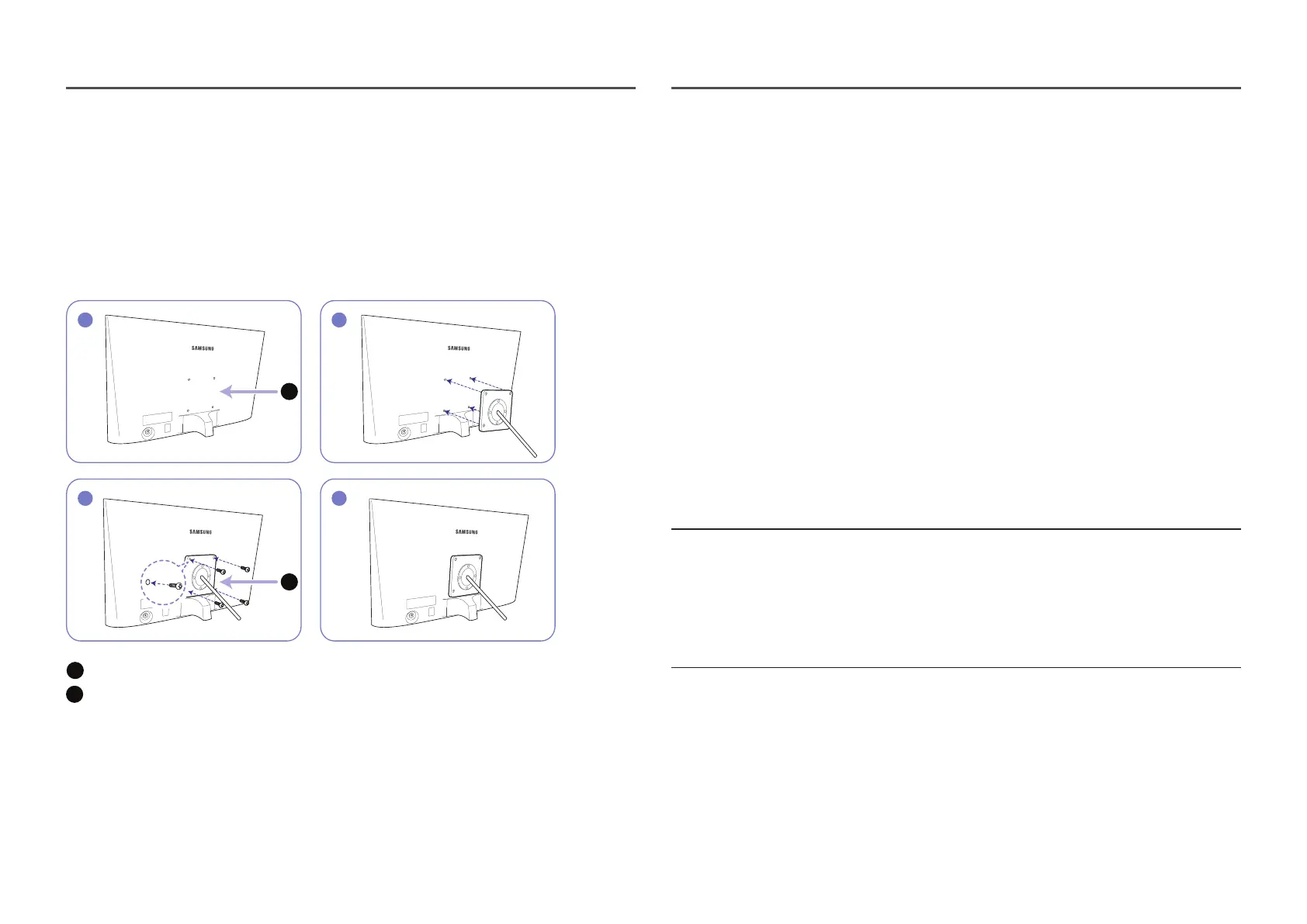 injury. Samsung shall not be held liable for any damage or injury caused by using improper screws