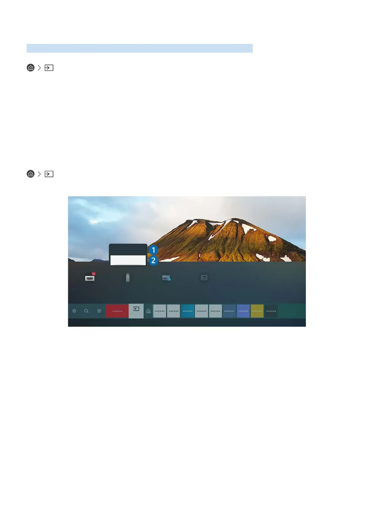 When you select a connected external device on the Source screen, the output of the selected device is displayed on