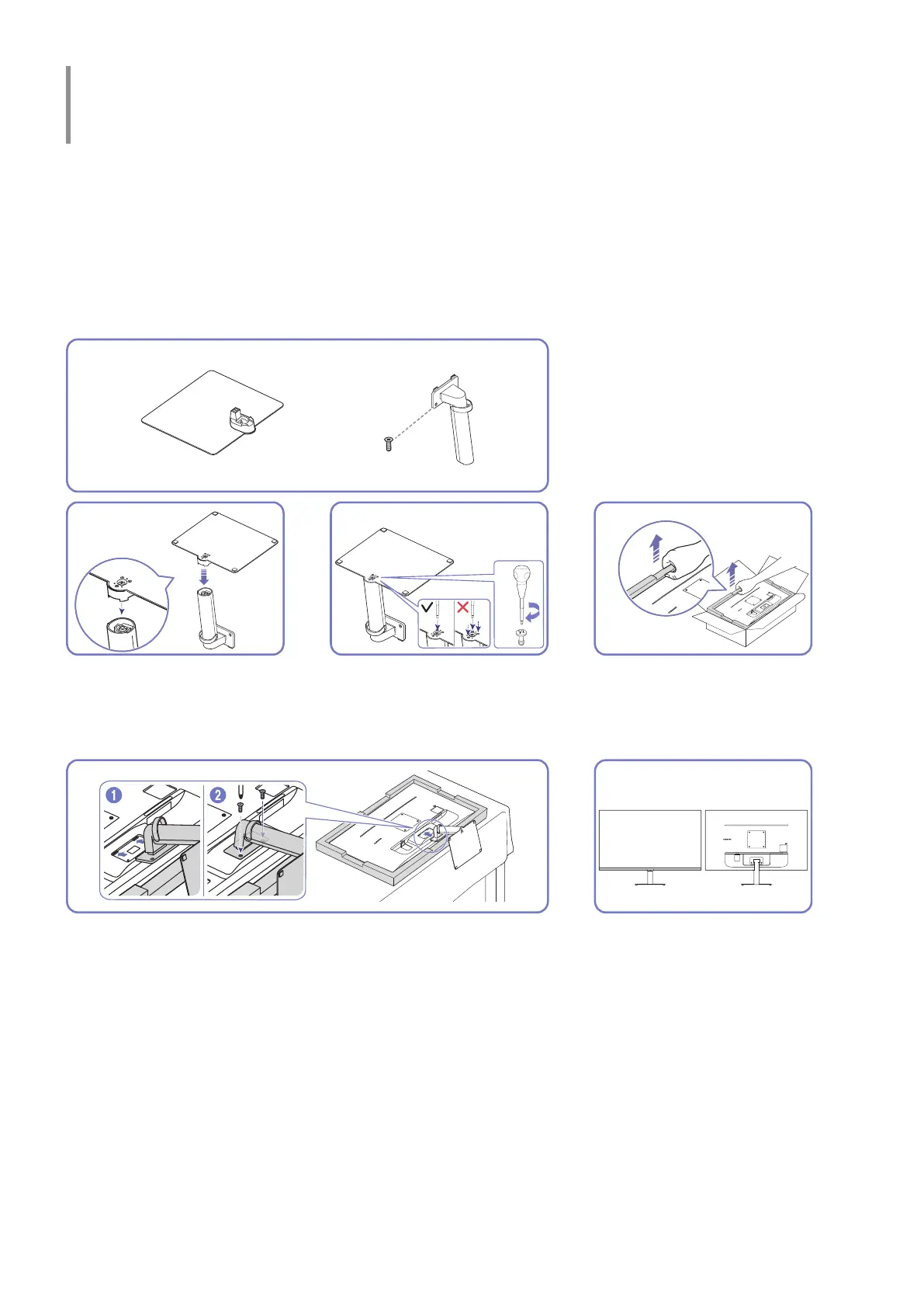 " Before assembling the product, place the product down on a flat and stable surface so that the screen is facing