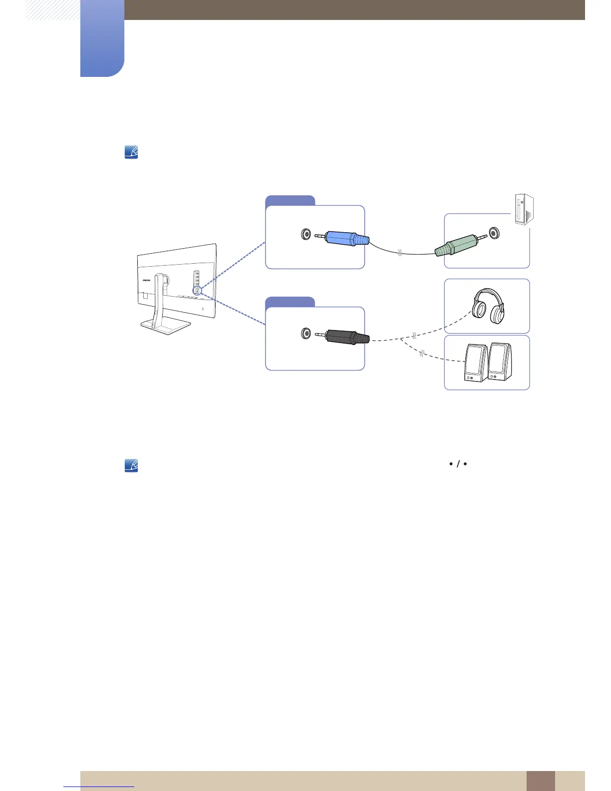 1 Connect the stereo cable to the [AUDIO IN] port on the back of the product and the AUDIO OUT