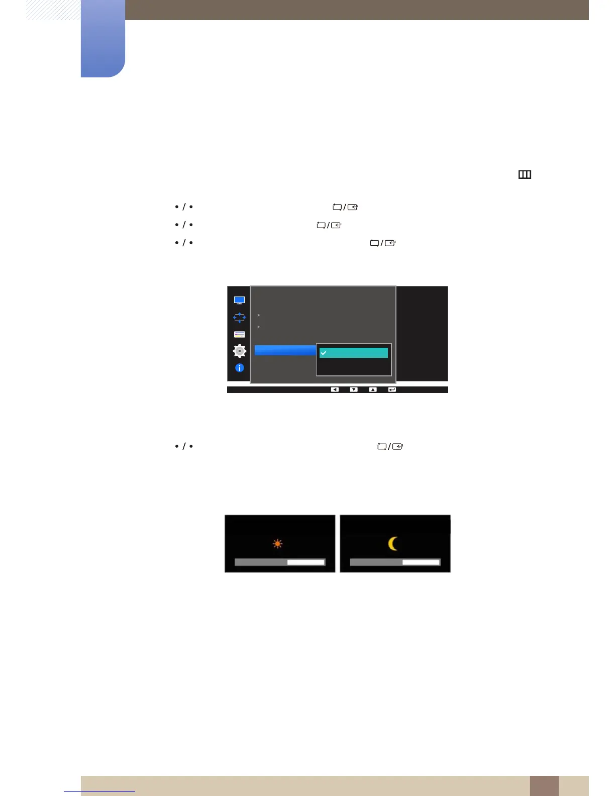 will decrease with a moon image displayed. The brightness slide bar will be displayed for 3 seconds