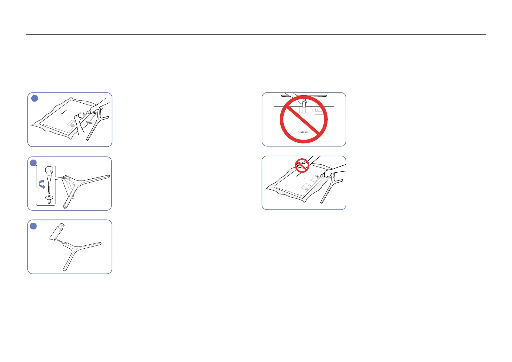 Before assembling the product, place the product down on a flat and stable surface so that the screen is facing downwards.