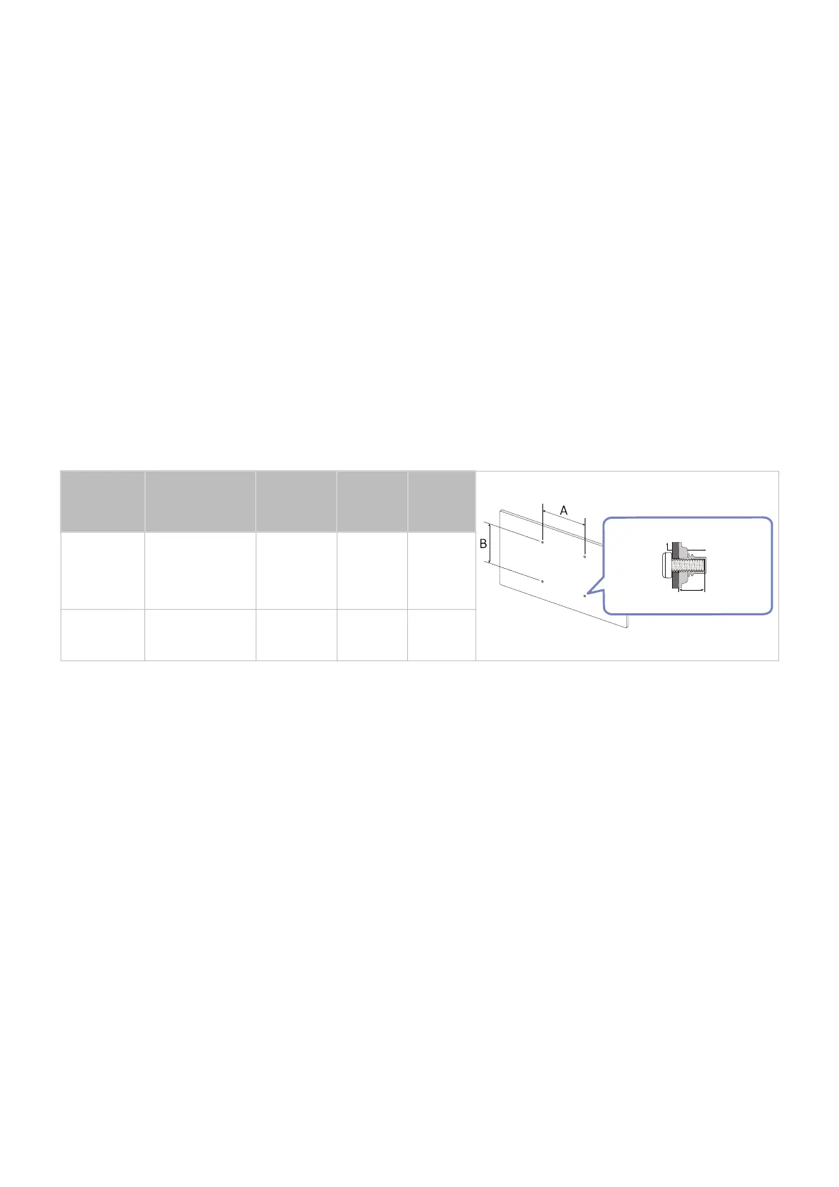 ● For wall mounts that do not comply with the VESA standard screw specifications, the length of the screws may