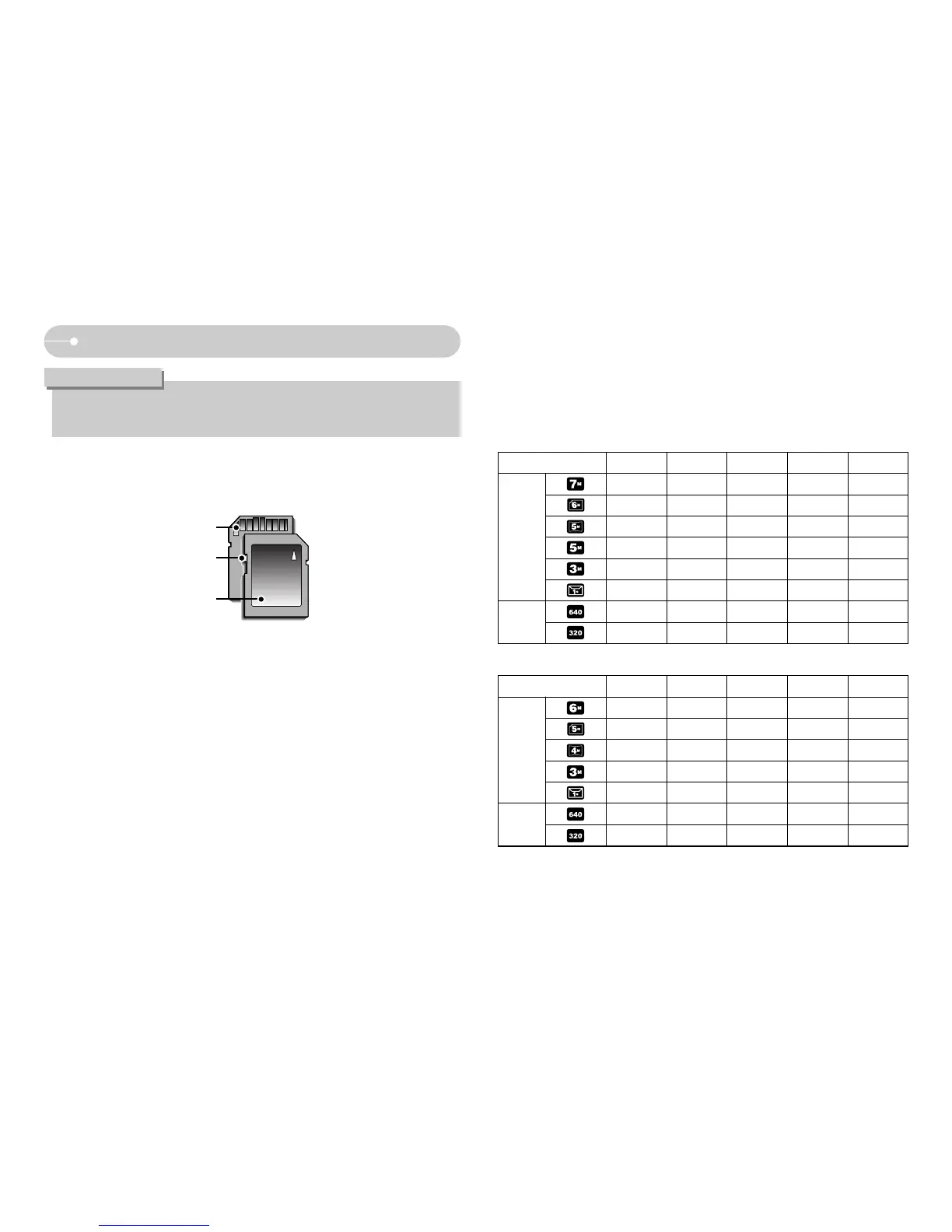 ■ When using a 256MB MMC (Multi Media Card), the specified shooting capacity