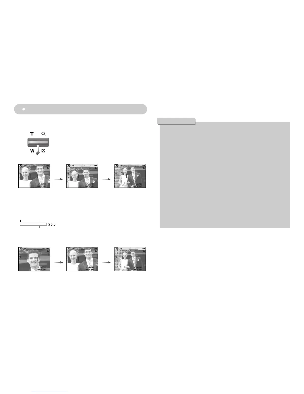 ● The digital zoom can't be activated in the Nightscene, Children, Text, Close