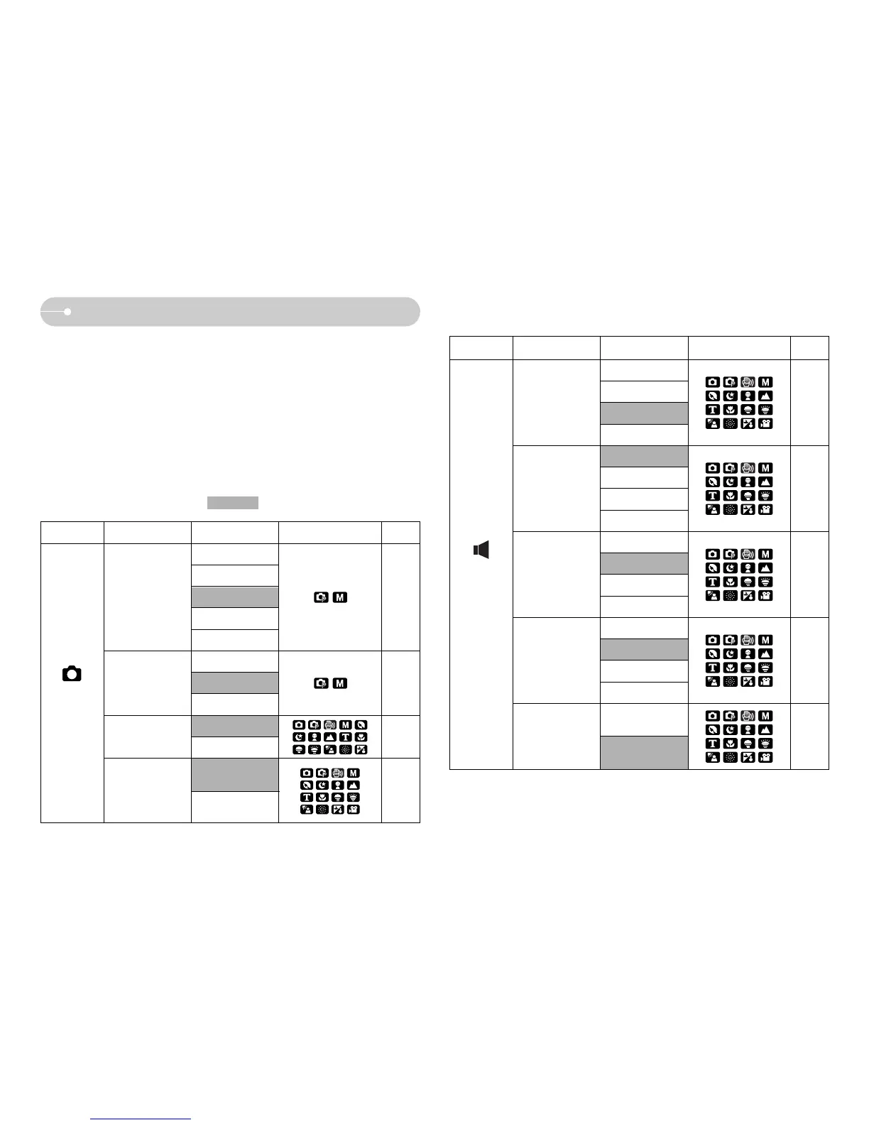 selected. The items indicated by are default settings.