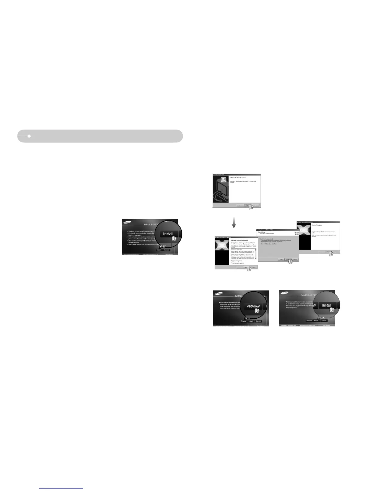 2. Install the camera driver, DirectX and Digimax Master by selecting a button