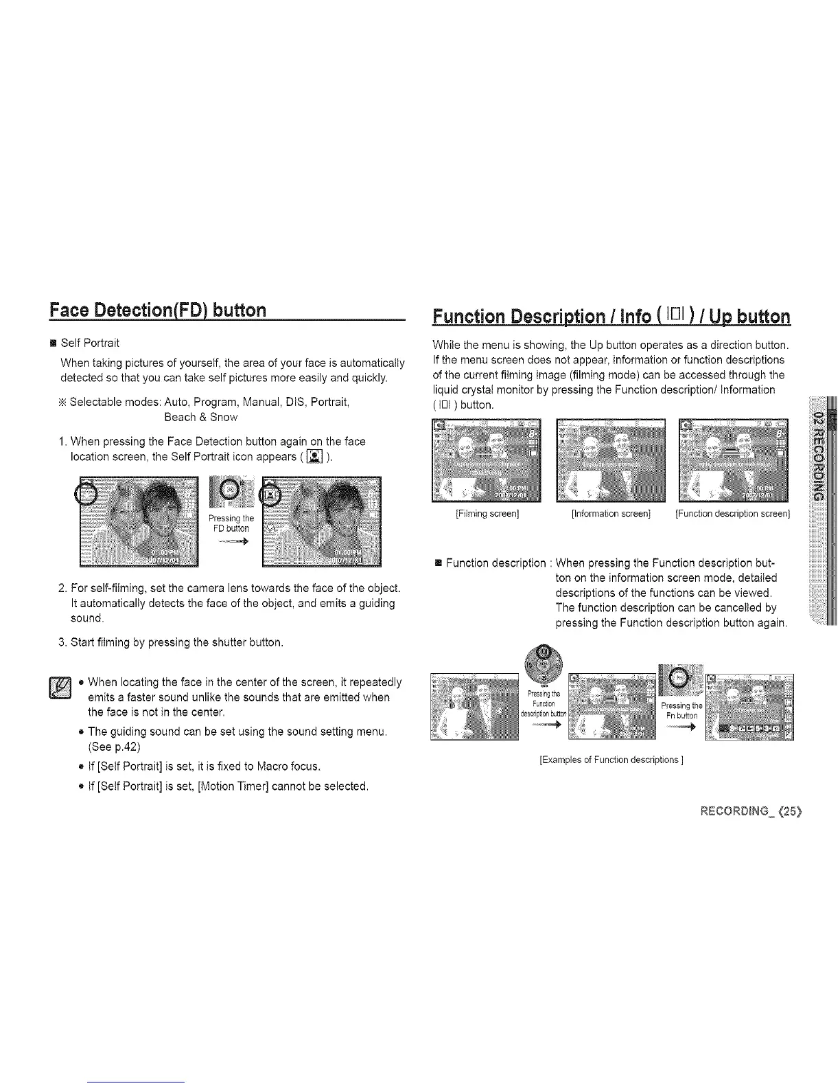 [Filming screen] [Information screen] [Function description screen]