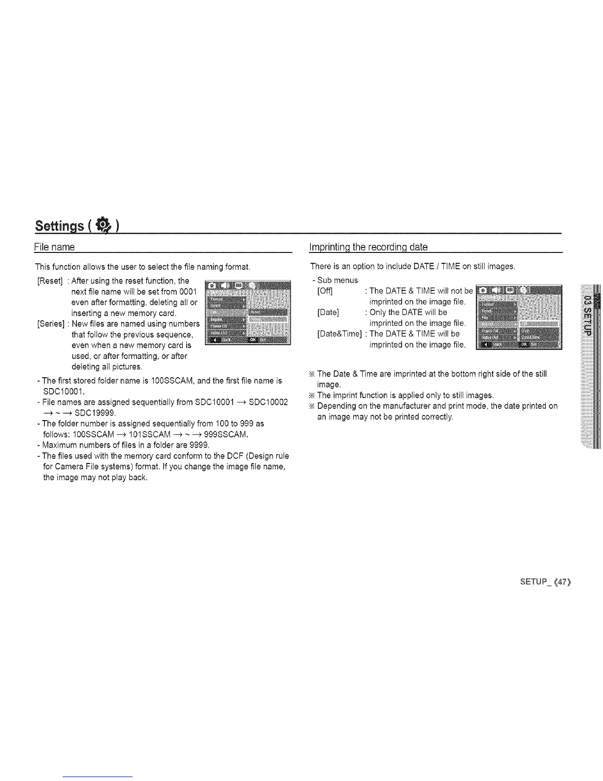 - File names are assigned sequentially from SDCl0001 -+ SDCl0002