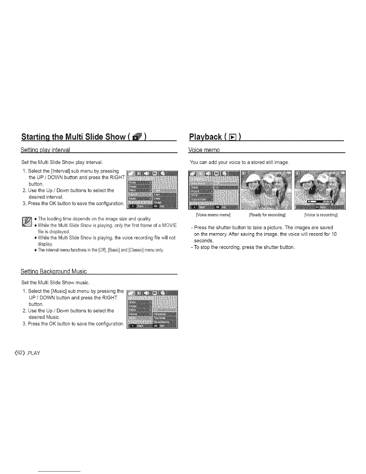 • While the Multi Slide Show is playing, the voice recording file will not