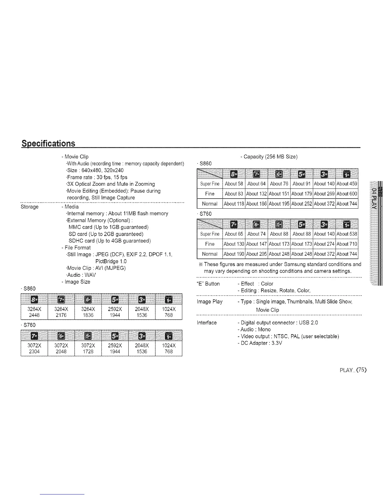 •Still Image : JPEG (DCF), EXIF 2.2, DPOF 1.1,