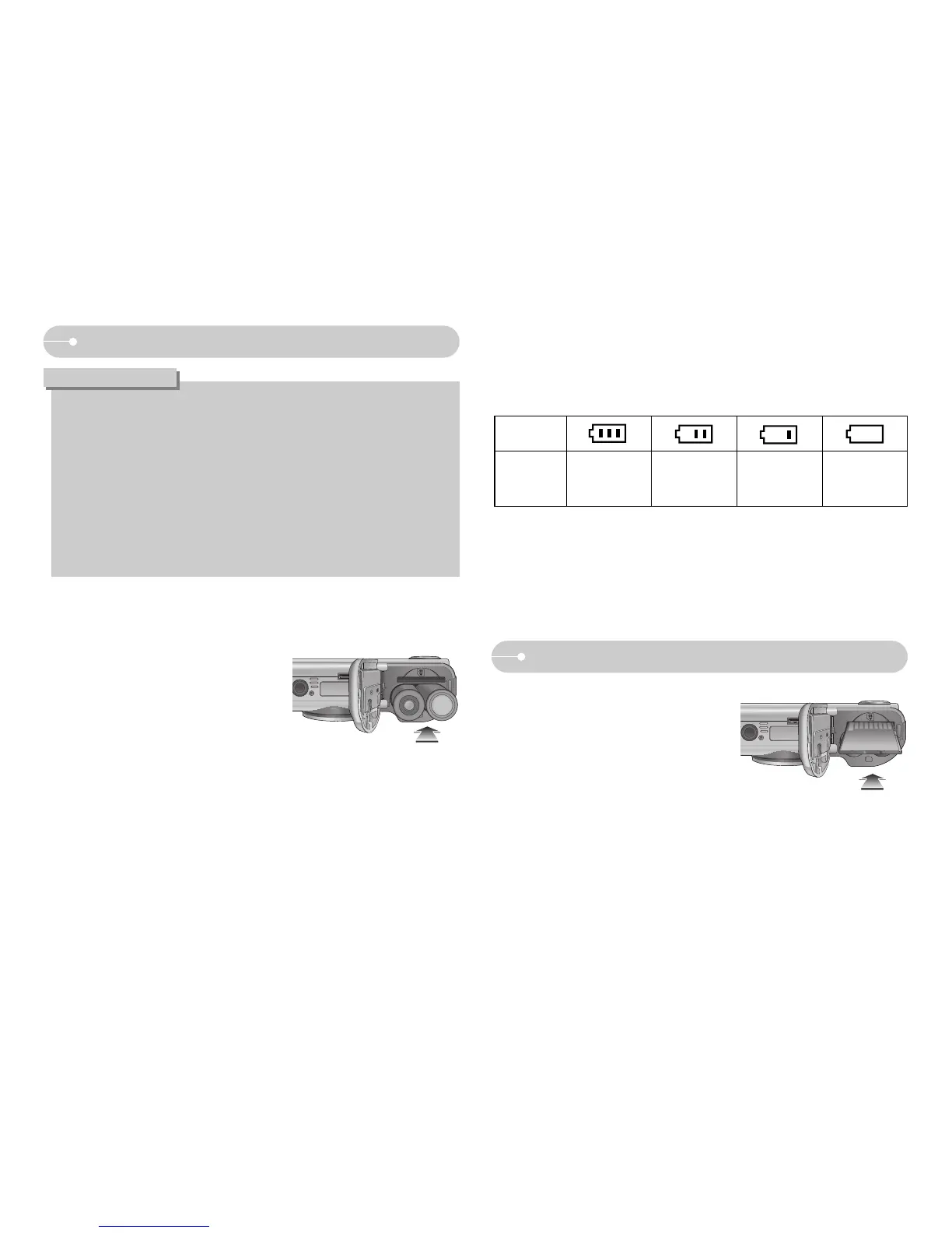 ƈ There are 4 indicators for battery condition that are displayed on the LCD