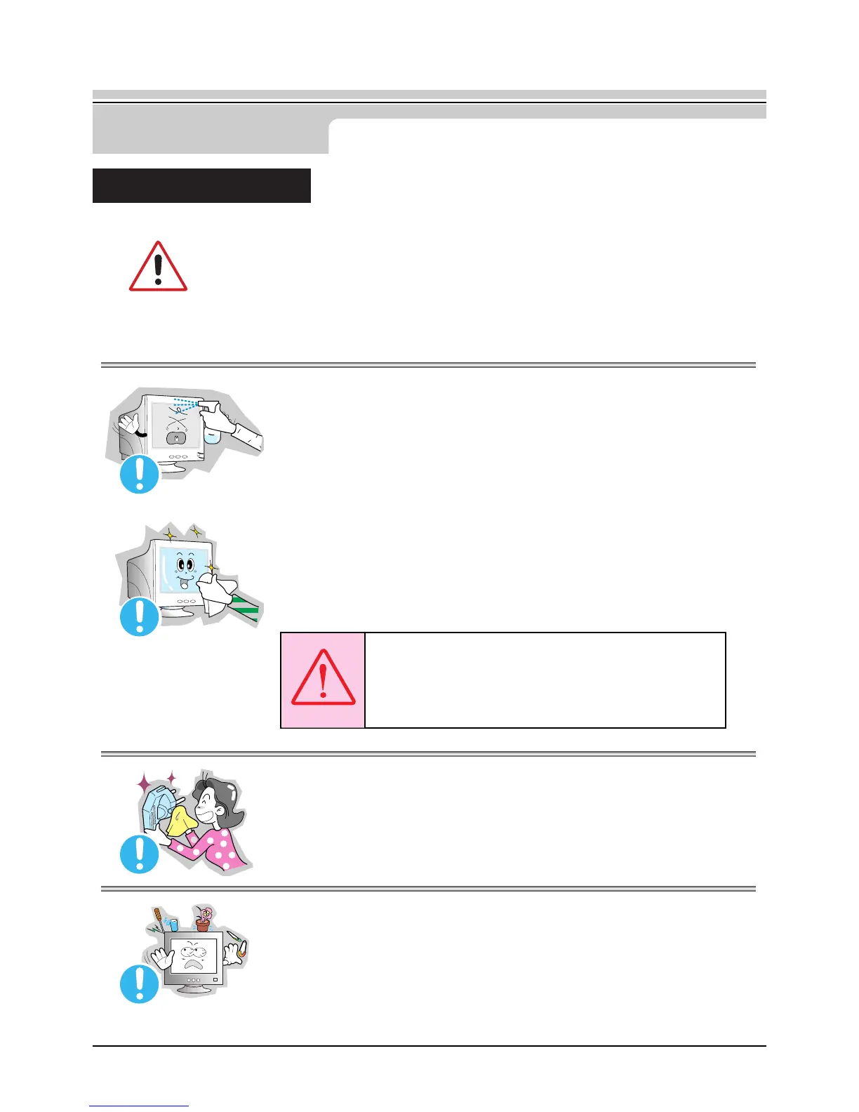 damage (color change) or crack the monitor case. The antiglare/anti-static surface coating