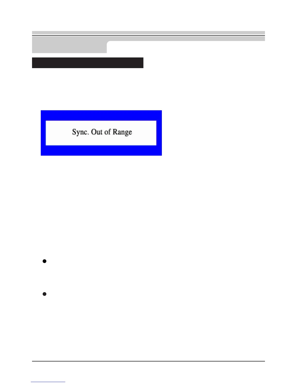 cause the monitor to become blank, have poor coloring, noise, Sync. Out of Range, etc. In this case, first check the source