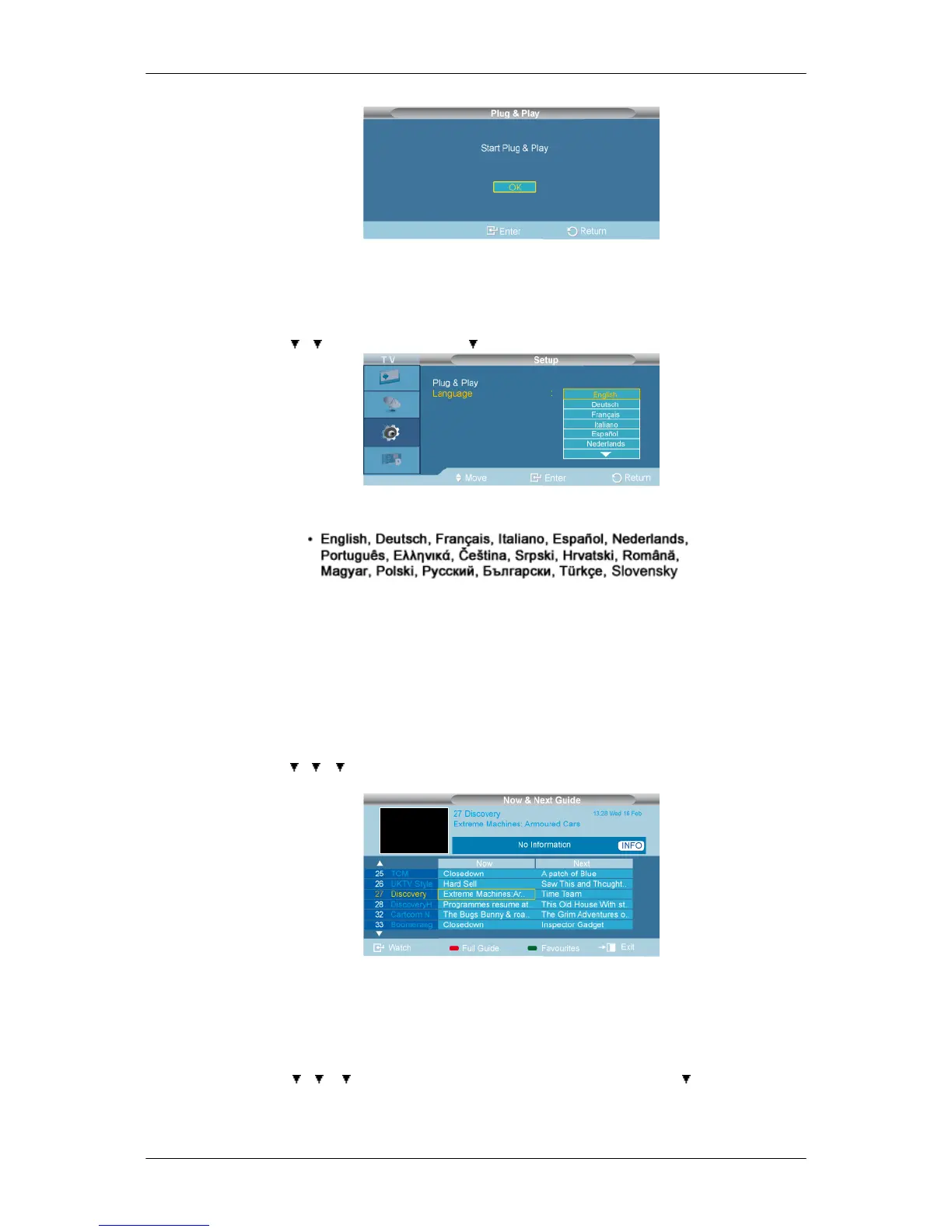 D.MENU → → → →[Digital Menu] → ENTER→[Guide] → ENTER→ENTER →[Now & Next