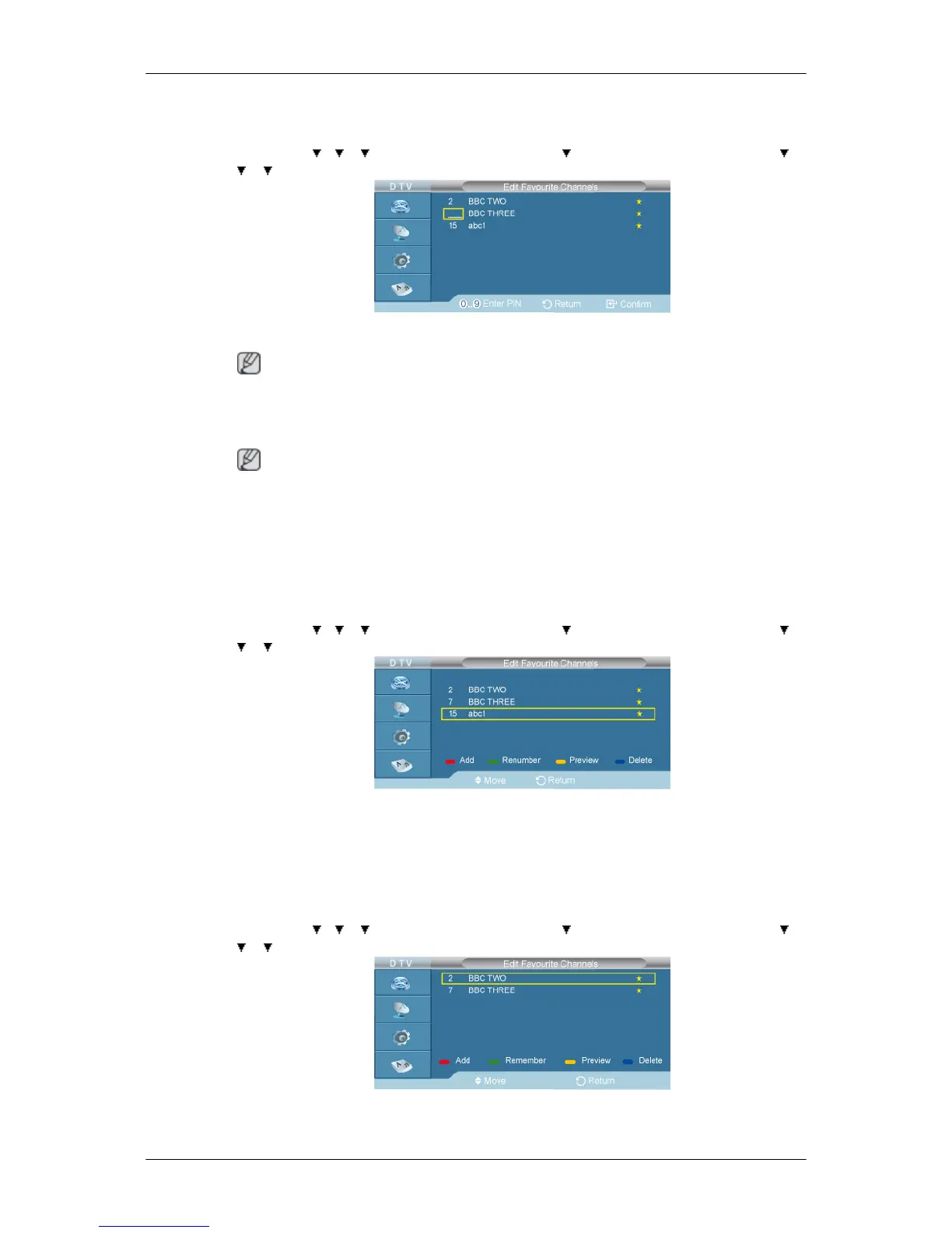 → →[Edit Favourite Channels] → ENTER