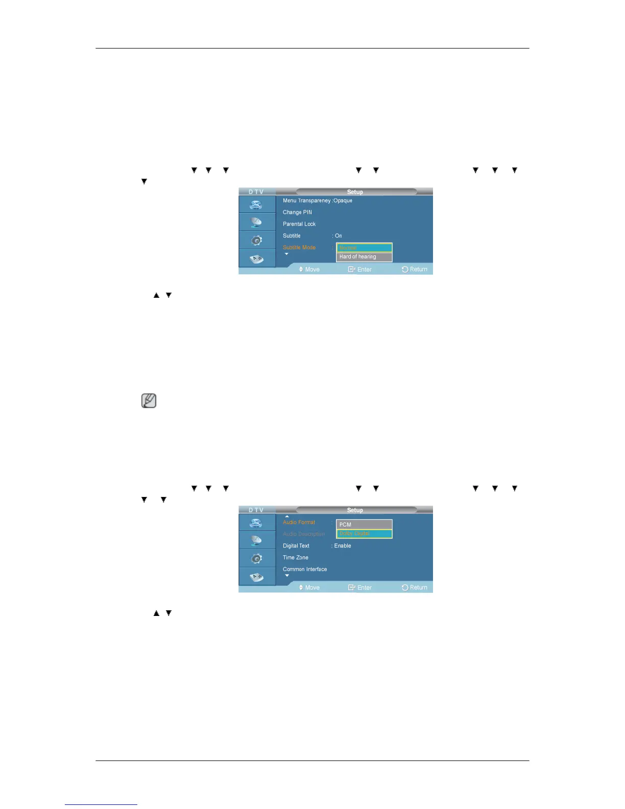 Use this menu to set the Subtitle Mode. "Normal" under the menu is the basic subtitle and "Hard of