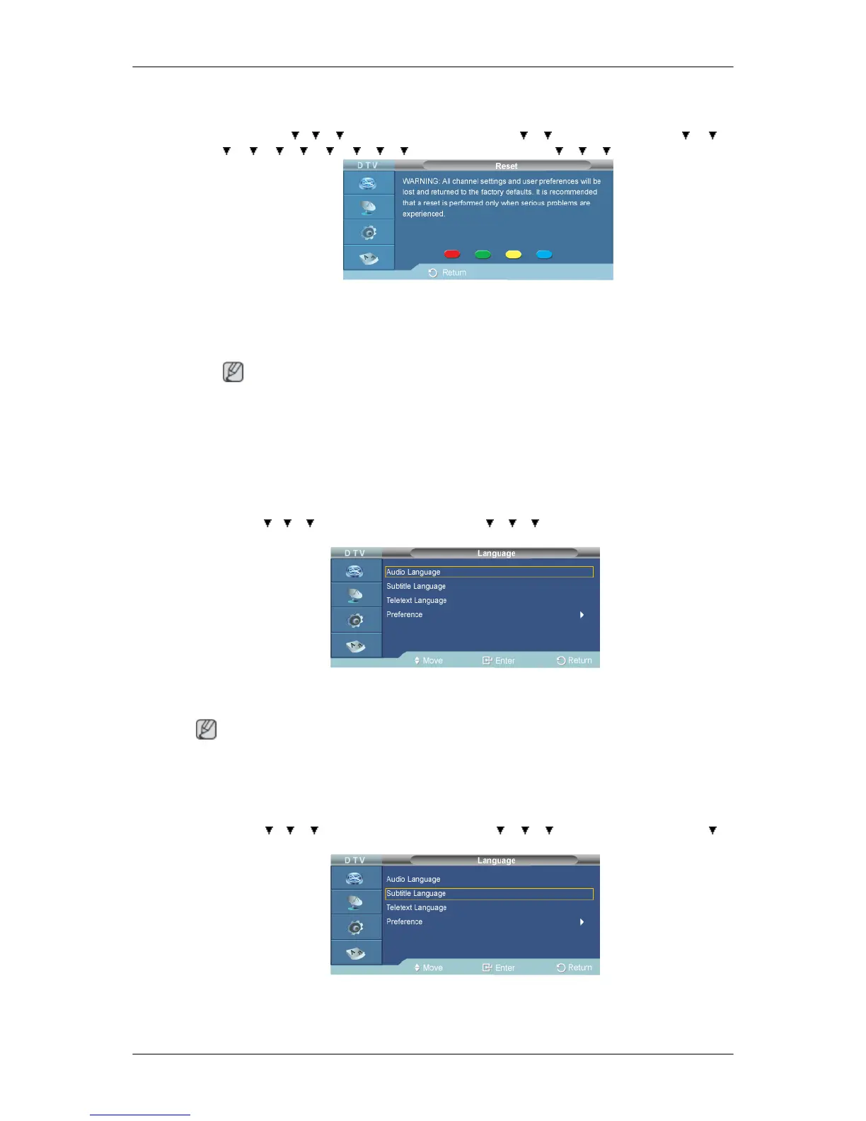 • English is the default in cases where the selected language is unavailable in the broadcast.