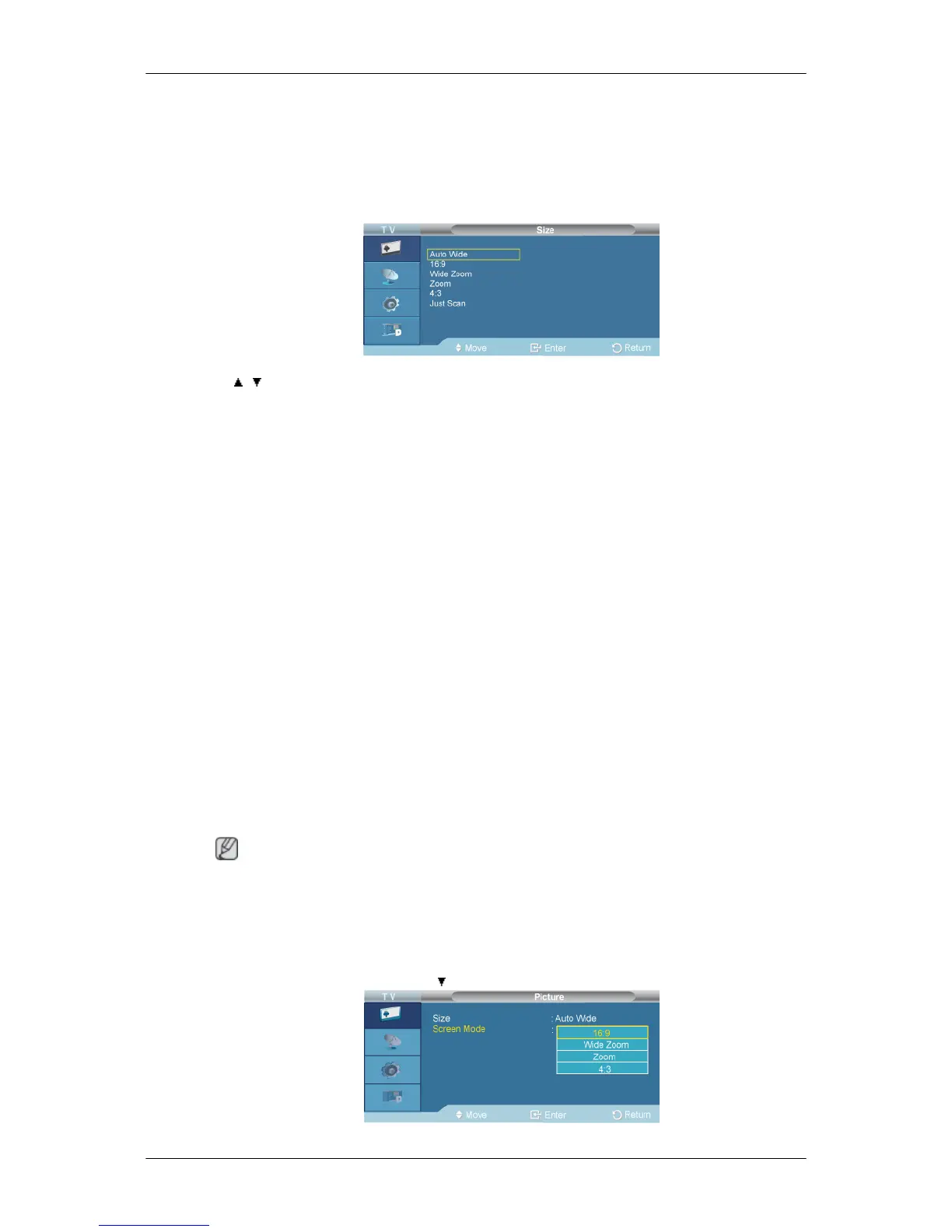 Auto Wide function is available only in TV, DTV, AV mode.