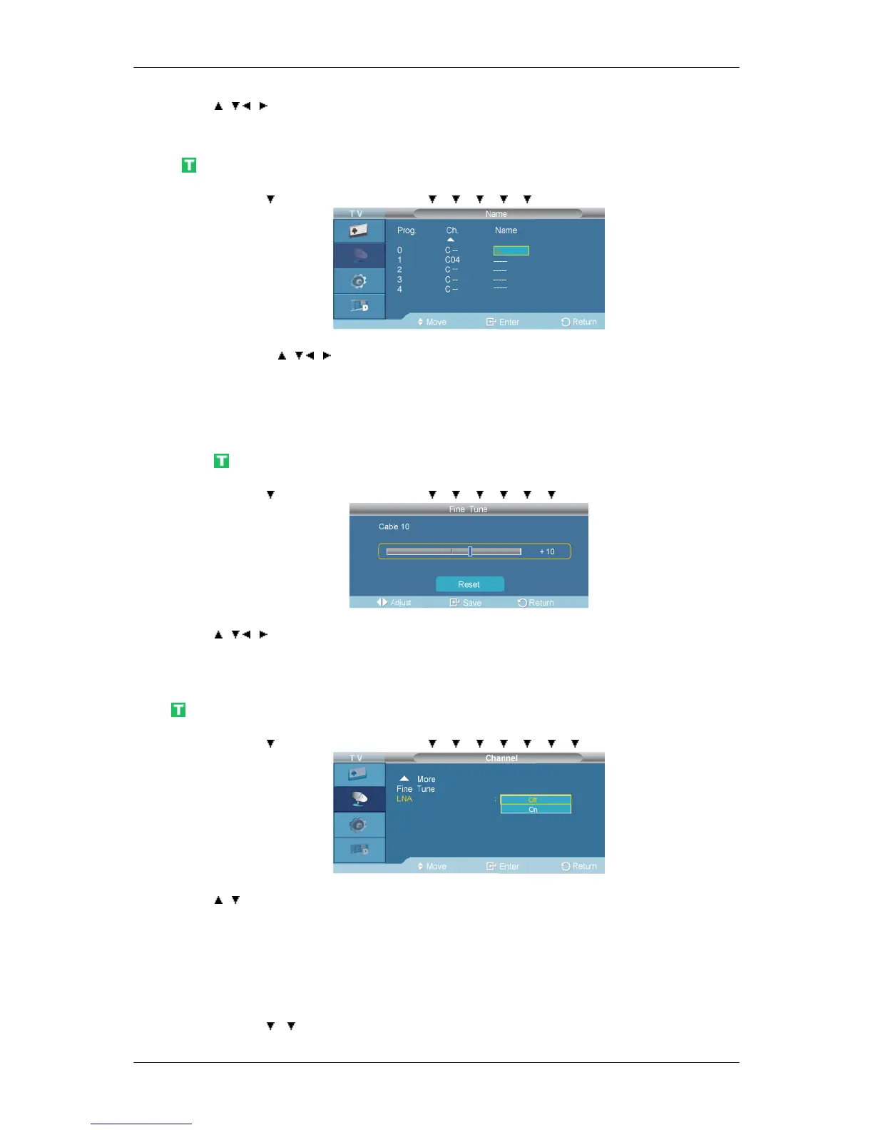 D.MENU → →[Channel] → ENTER → → → → → → → ENTER →[Fine Tune]