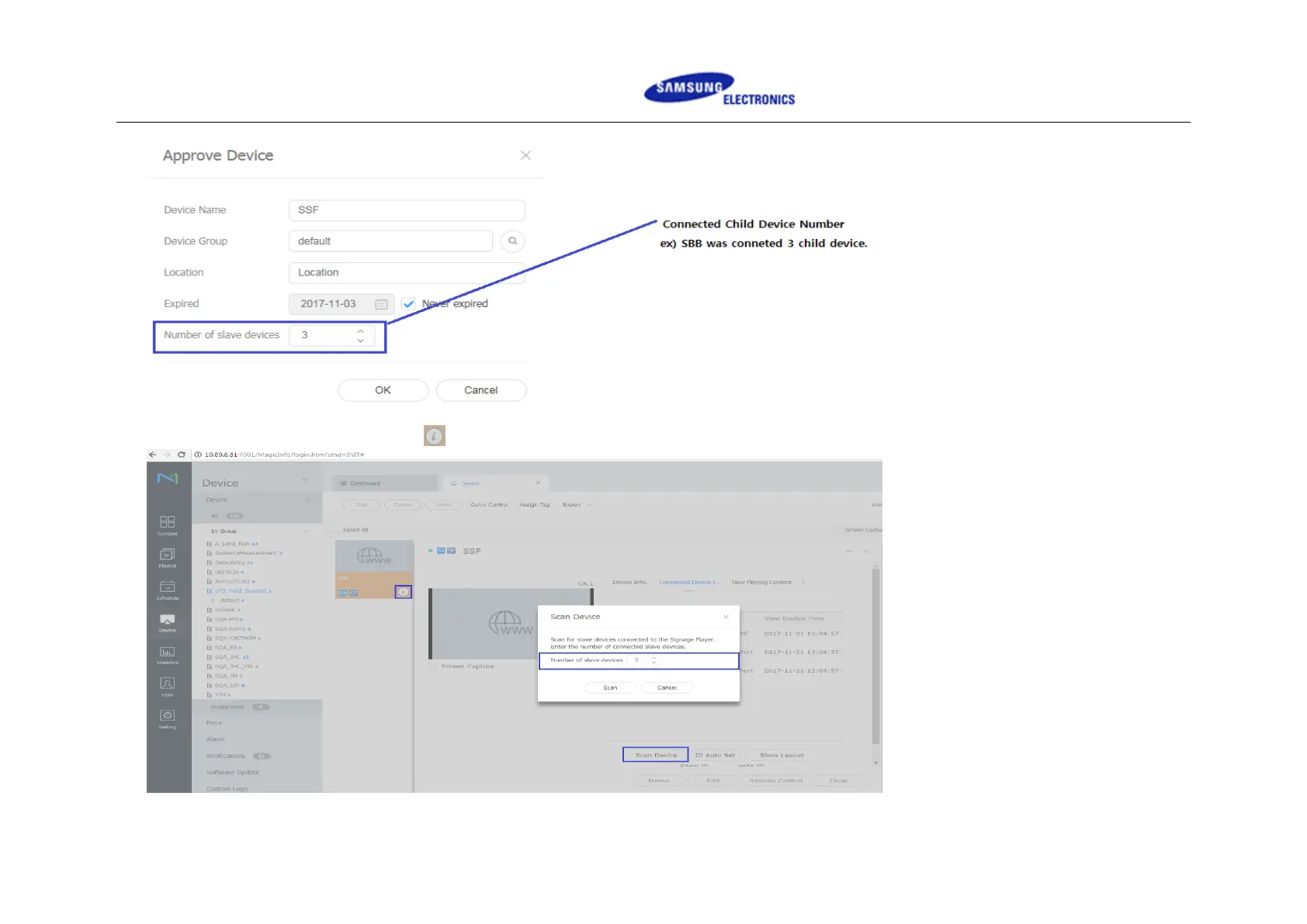 2) Searching Scan Device by Server : Click -> Conneted Device Info -> Scan Device