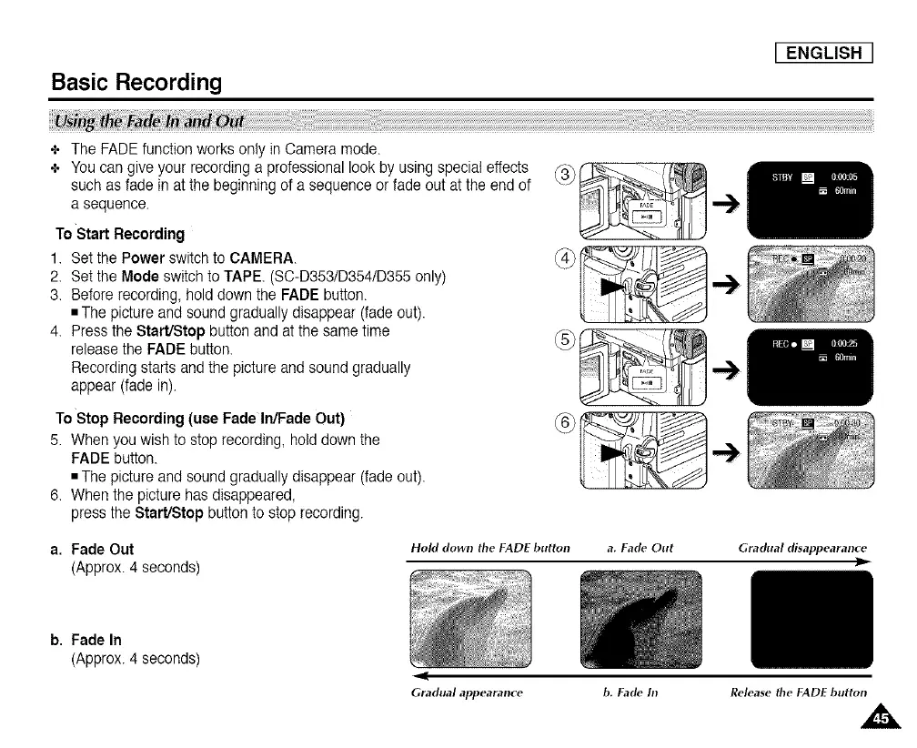 3. Before recording, hold down the FADE button.