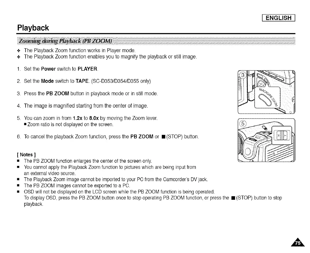 6. Tocancel the playback Zoom function, press the PB ZOOM or • (STOP) button.
