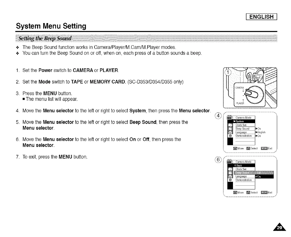 + The Beep Sound function works in CameralPlayerlMOamlMPlayer modes.