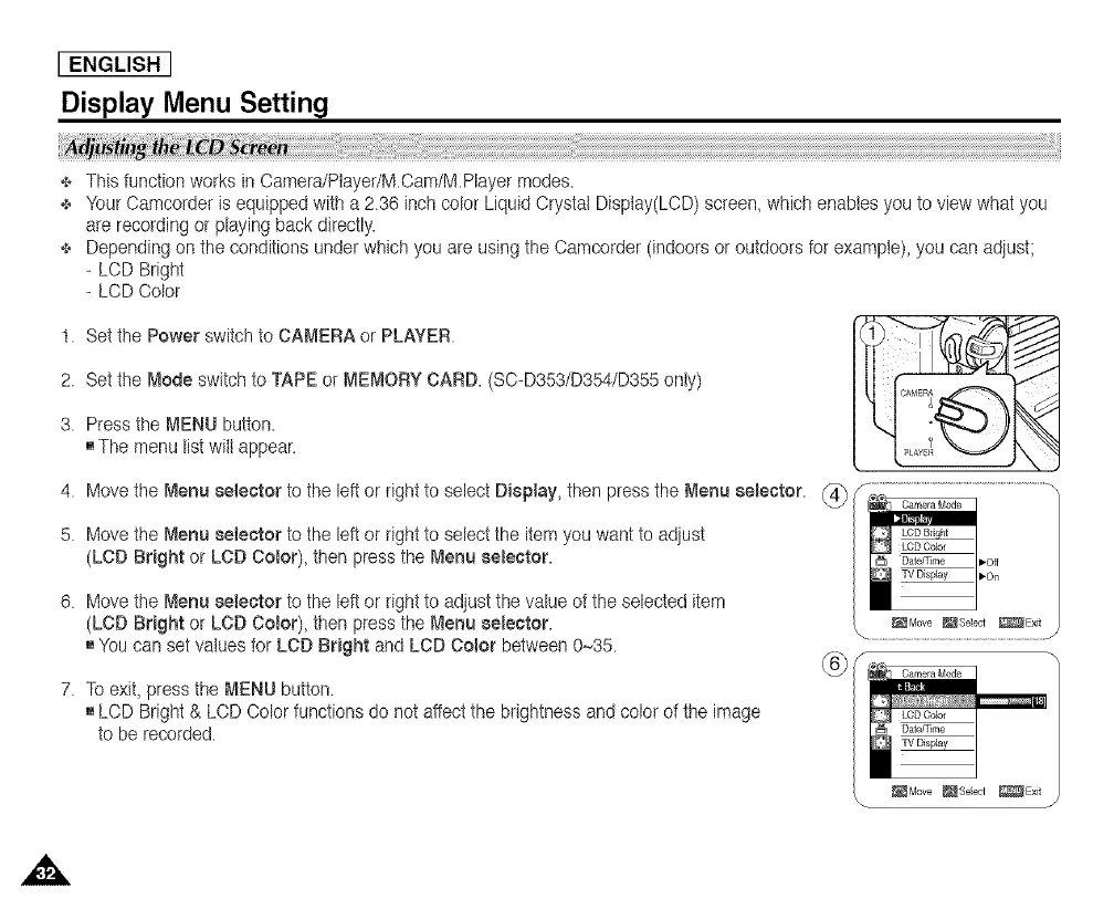 • 'four Camcorder is equippedwith a 2.36 inch color Liquid Crystat Display(LeD) screen, which enables you to view what you