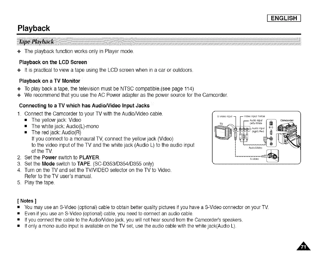 + To playback a tape, the television must be NTSCcompatible.(see page 114)