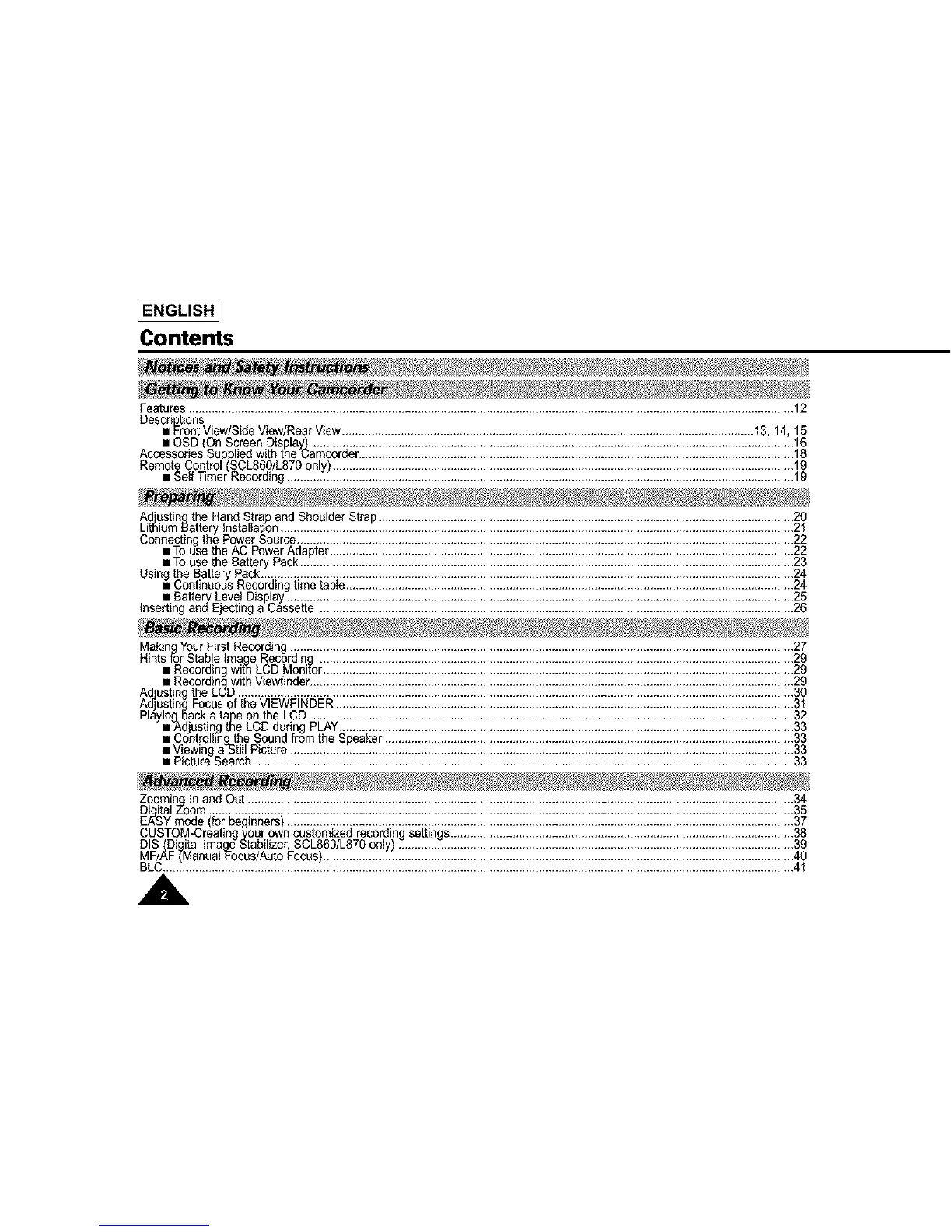DIS (Digital Image Stabilizer, SCL860/L870 only) ......................................................................................................................... 39
