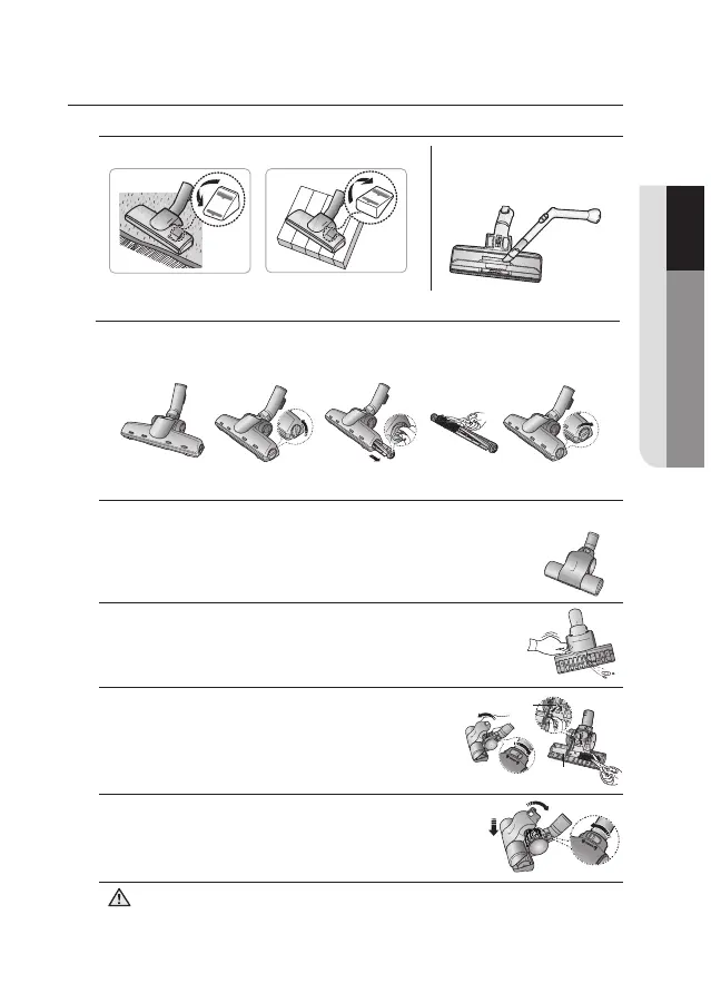 • Adjust the inlet lever according to the oor surface. • Remove waste matter
