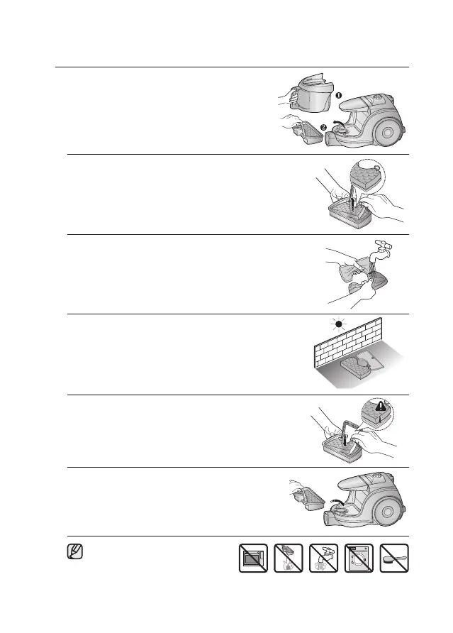 3. Wash the sponge and the filter of the dust pack with water.