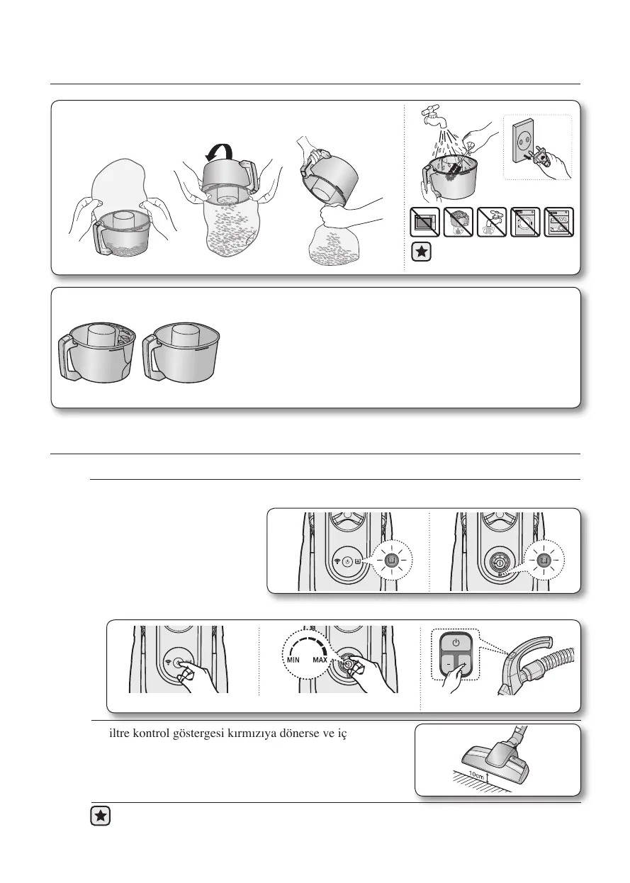 • Emiş gücü azaldığında kırmızı ışık yanacaktır. Işık yandığında, lütfen toz paketini temizleyin