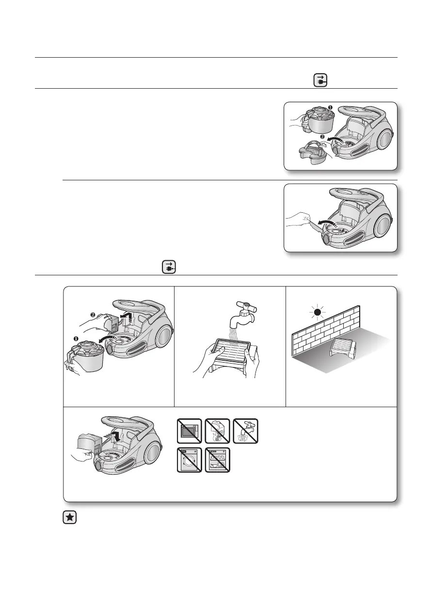 Filtreyi elektrikli süpürge içine yerleştirmeden önce tamamı ile kuru olduğundan emin
