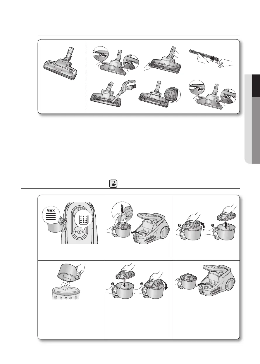 4. Remove dust inside the brush housing using a dry duster or crevice tool.